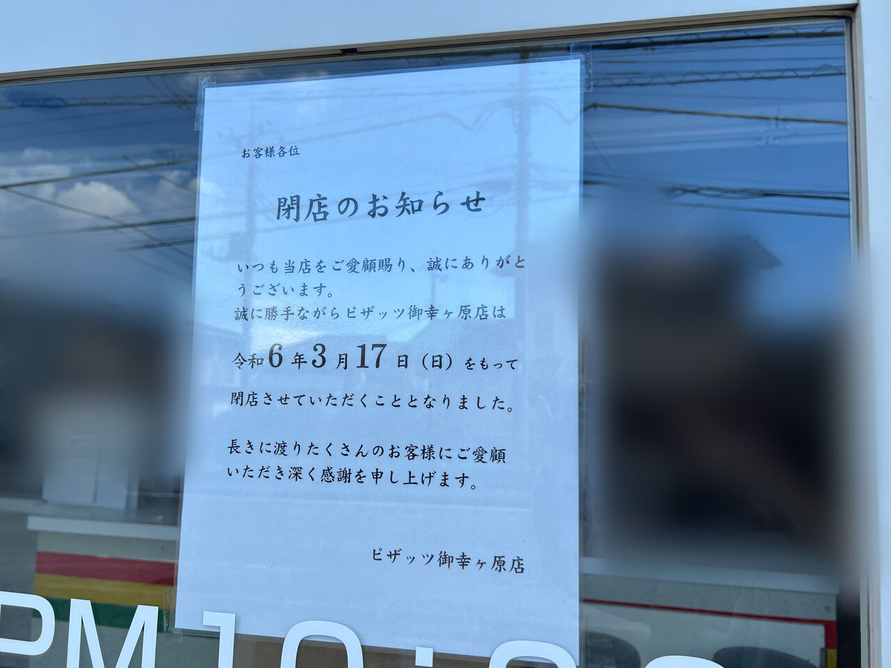 『ピザッツ 御幸ヶ原店』が閉店してる。