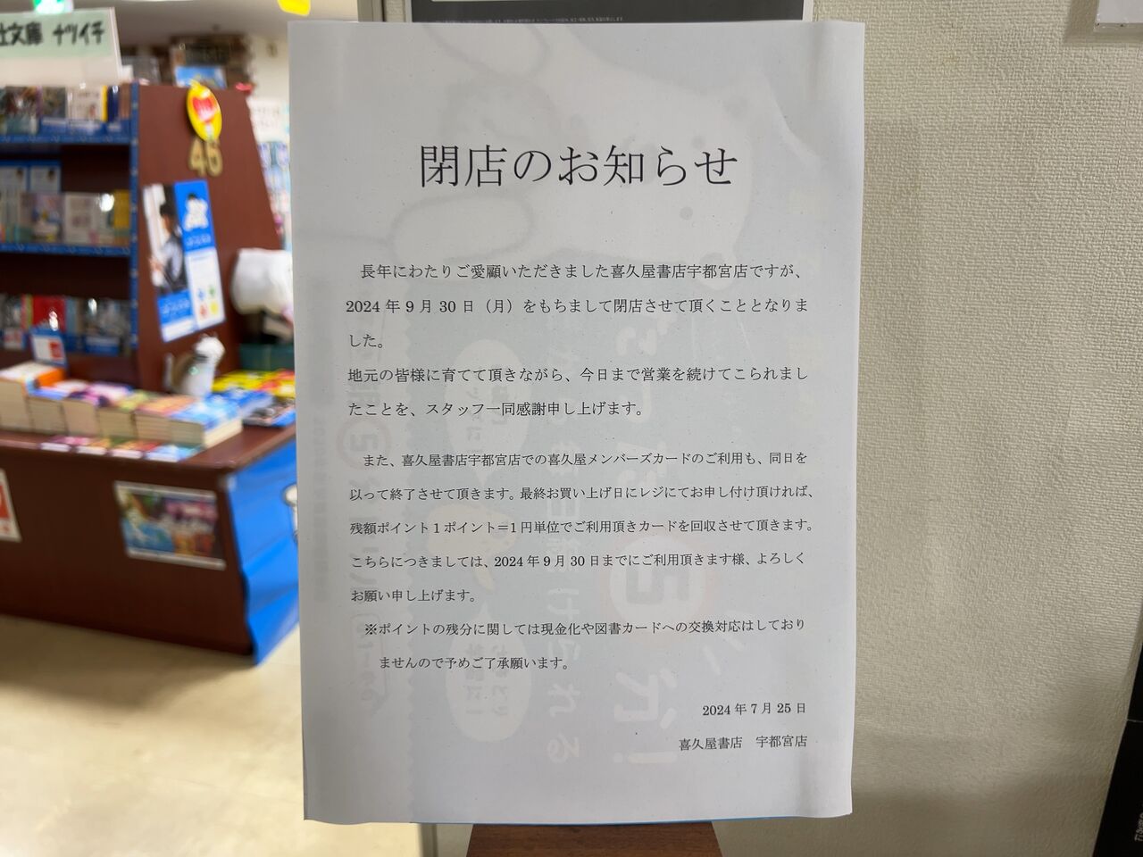 『喜久屋書店 宇都宮店』が閉店!?