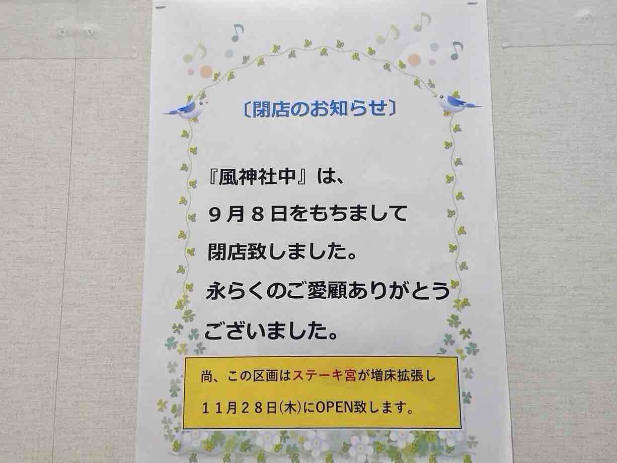 お隣にあった『風神社中』が閉店。